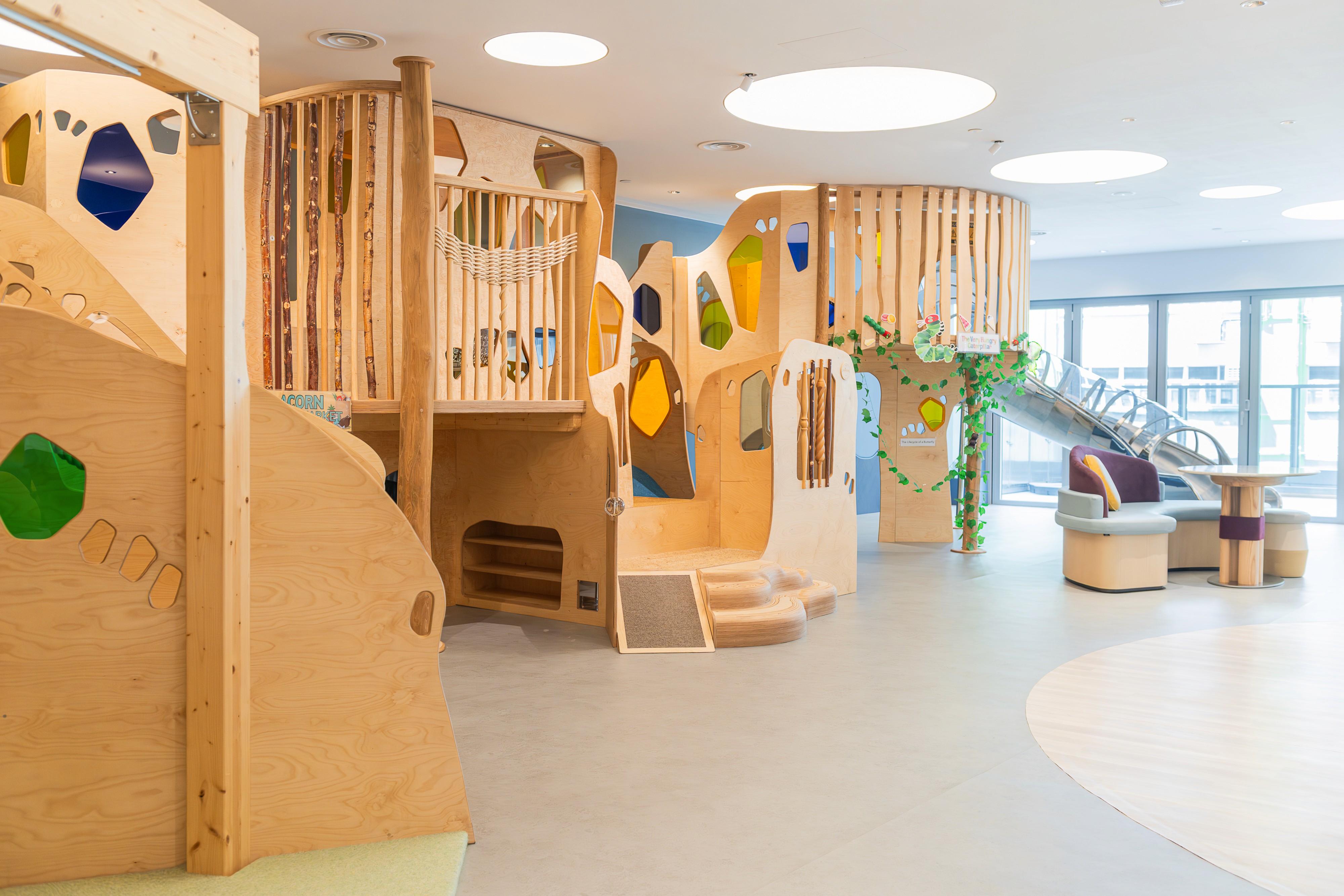 This project showcases an innovative indoor playroom designed specifically for early years children, emphasizing active play, imaginative exploration, and calming retreat spaces.