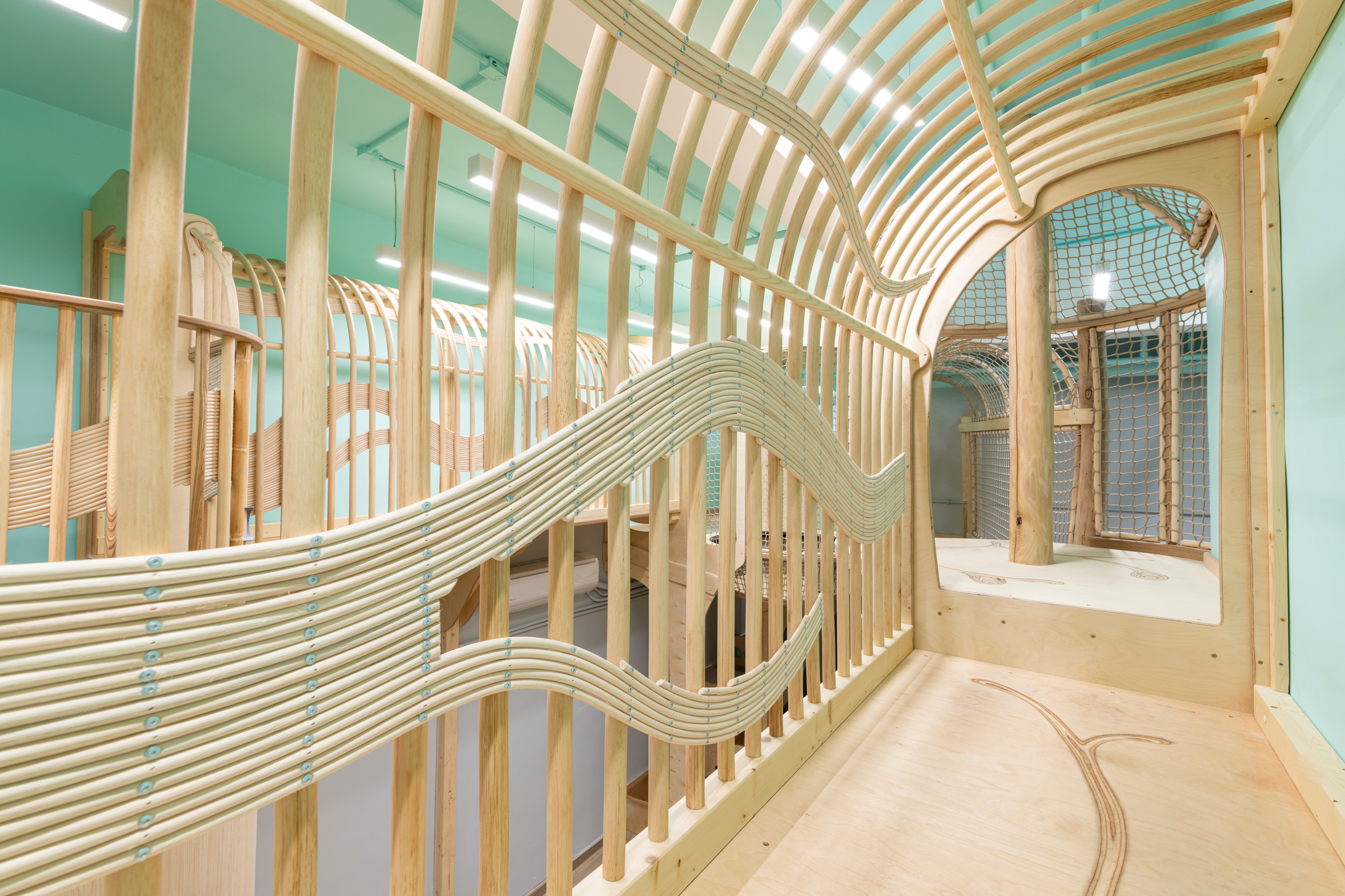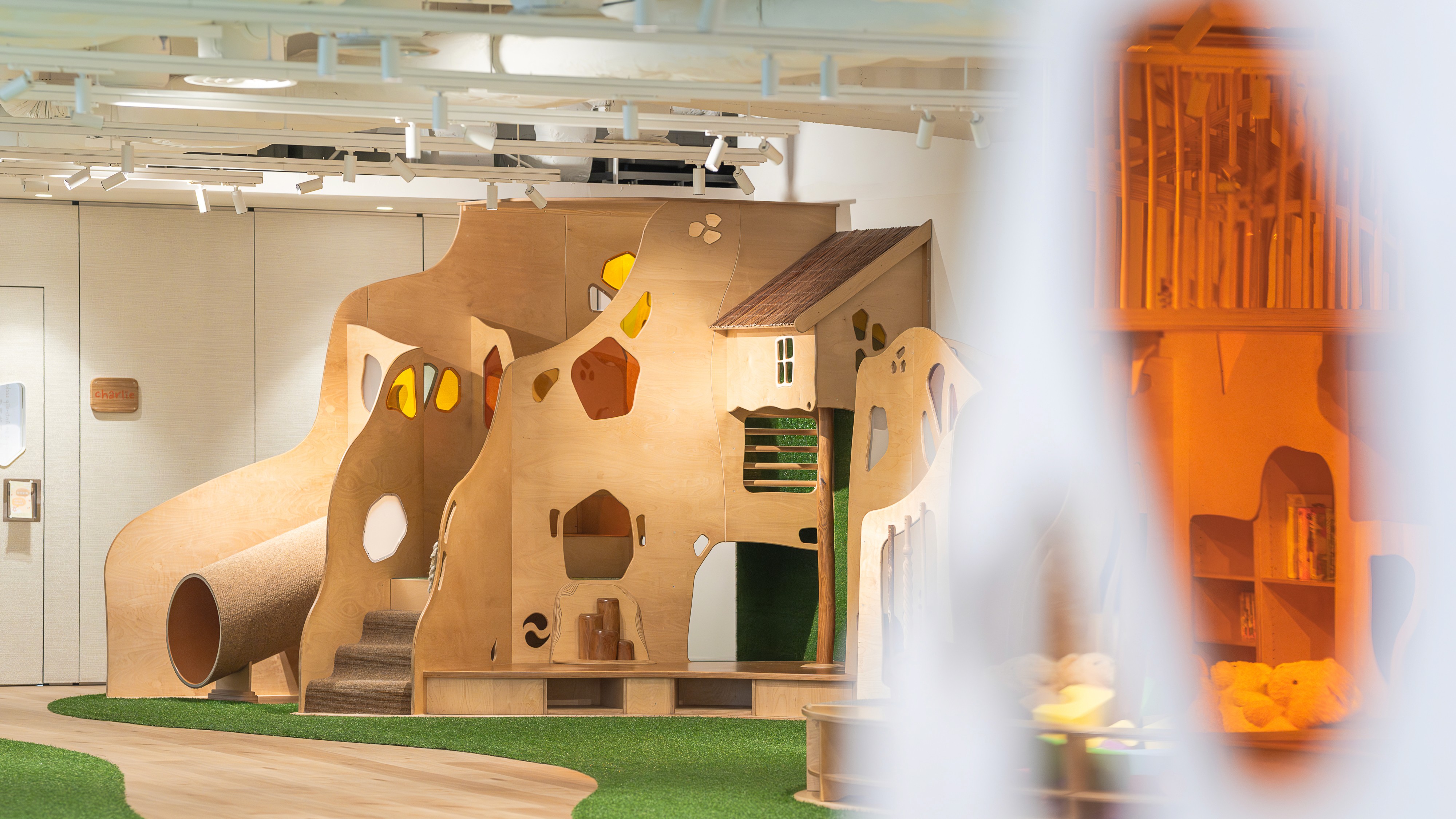 This project features a vibrant playroom located in the heart of the city within a shopping center, designed to provide a unique blend of active play, calm retreats, and imaginative exploration.