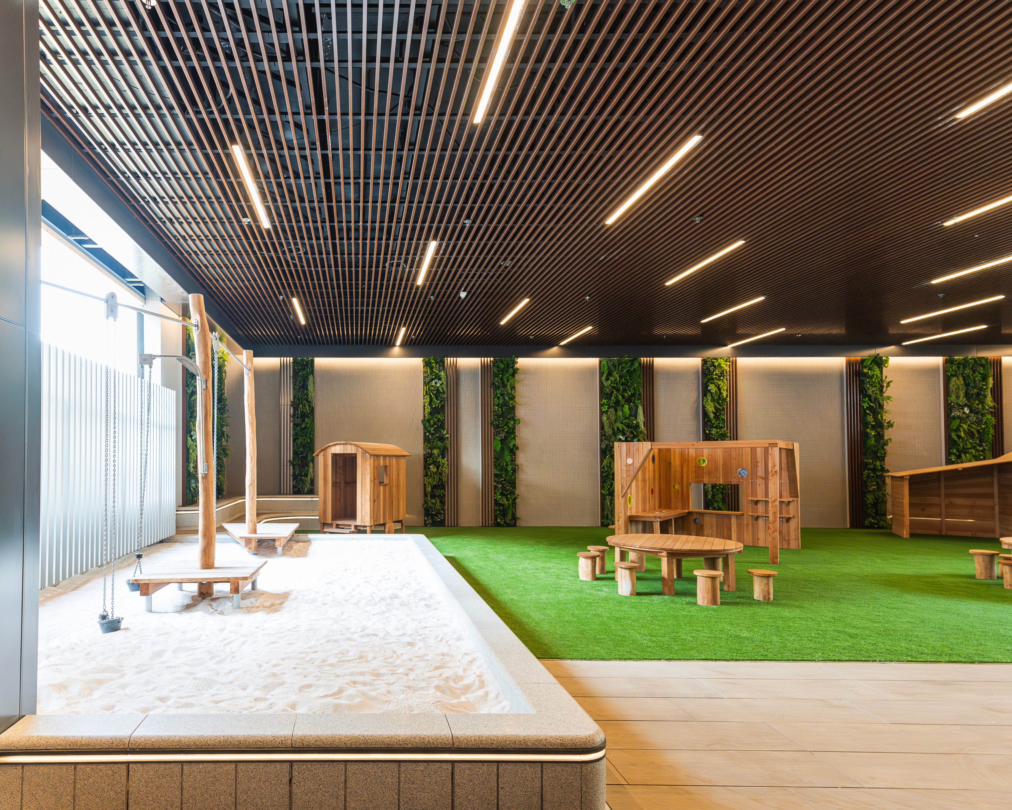 Mighty Oaks Family Centre features the Acorn Playhouse, designed with modular movement and learning zones developed in collaboration with teachers to support the daily rhythm of primary learners.