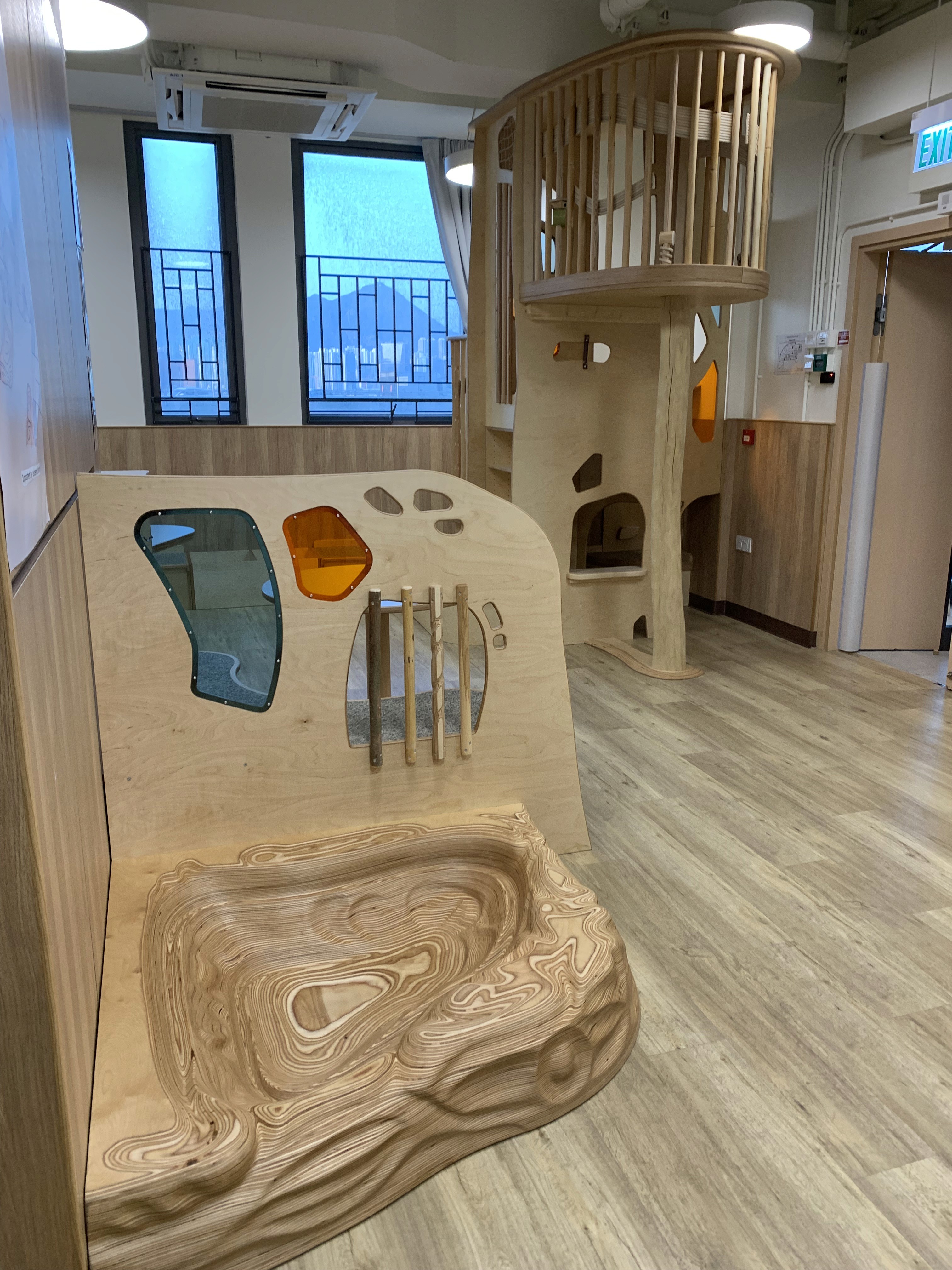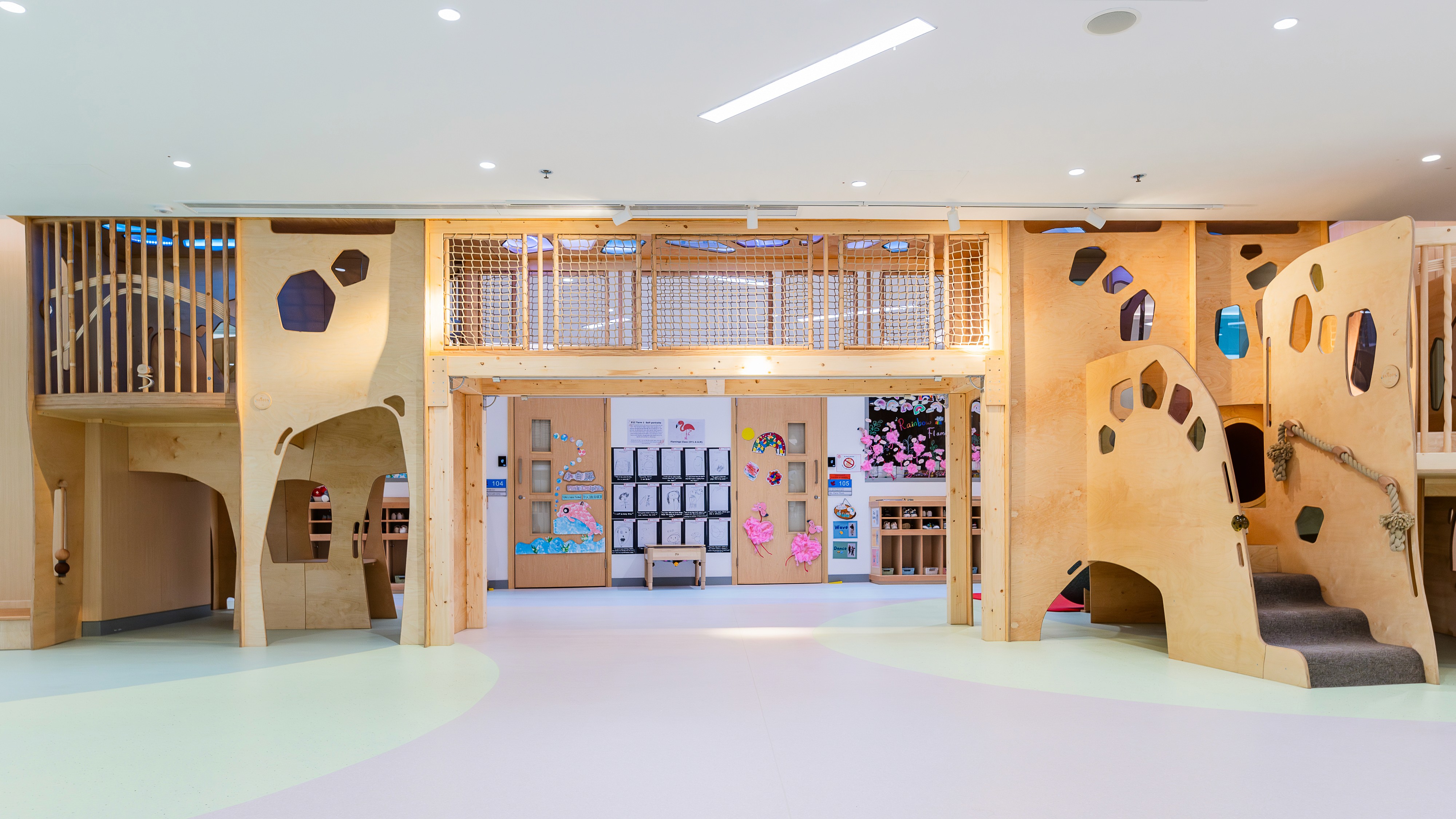 This urban playroom oasis is a carefully crafted space that balances active engagement with relaxation, encouraging holistic development and enriching experiences for children in an accessible city setting.